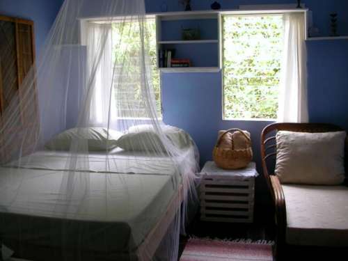 Enjoy a unique island adventure in Mamiku, this East Coast countryside home hosted by an American ex-pate. You are invited to share this open air, countryside home in 1 of 3 small cozy rooms tastefully decorated with little special touches including lovely flowing mosquito nets. There is a common bath/shower for all guests. You will be delighted with this lovely lush setting of fruit trees, tropical plants, birds and a small river gently flowing along side this quiet and remote location.