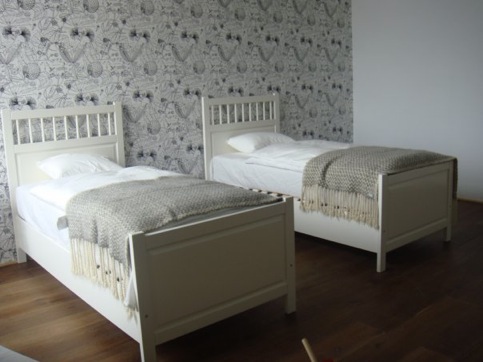 You can stay in four-bed room or in a design double room. Four-bed rooms with two bunk beds are equipped with individual cells to ensure the safety of your belongings. Refrigerator, washing machine, bathroom are common for two rooms.