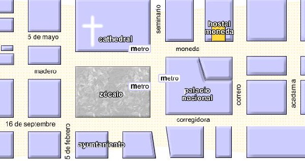 If you are using an airport taxi we recommend that you buy a ticket inside the airport and tell the taxi driver that the Hostal Moneda is located half a block from the Zócalo at Moneda St. Do not pay anything more than the ticket, even if the driver argues 'extra' charges. Price is about 140 pesos for up to 4 persons (around 14 USD).