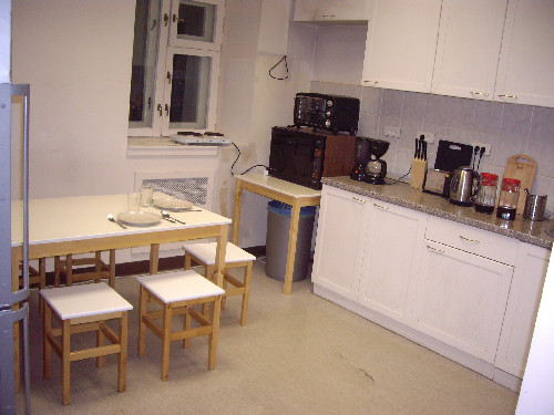 We have a large kitchen available to you, a huge living room and coffee bar where you can mingle with your new friends or wander through our two floors to enjoy the phenomenal views looking down onto the New Arbat. With fourteen separate rooms, we can offer you a choice of private rooms, mixed accommodations, or separate women's and men's rooms.