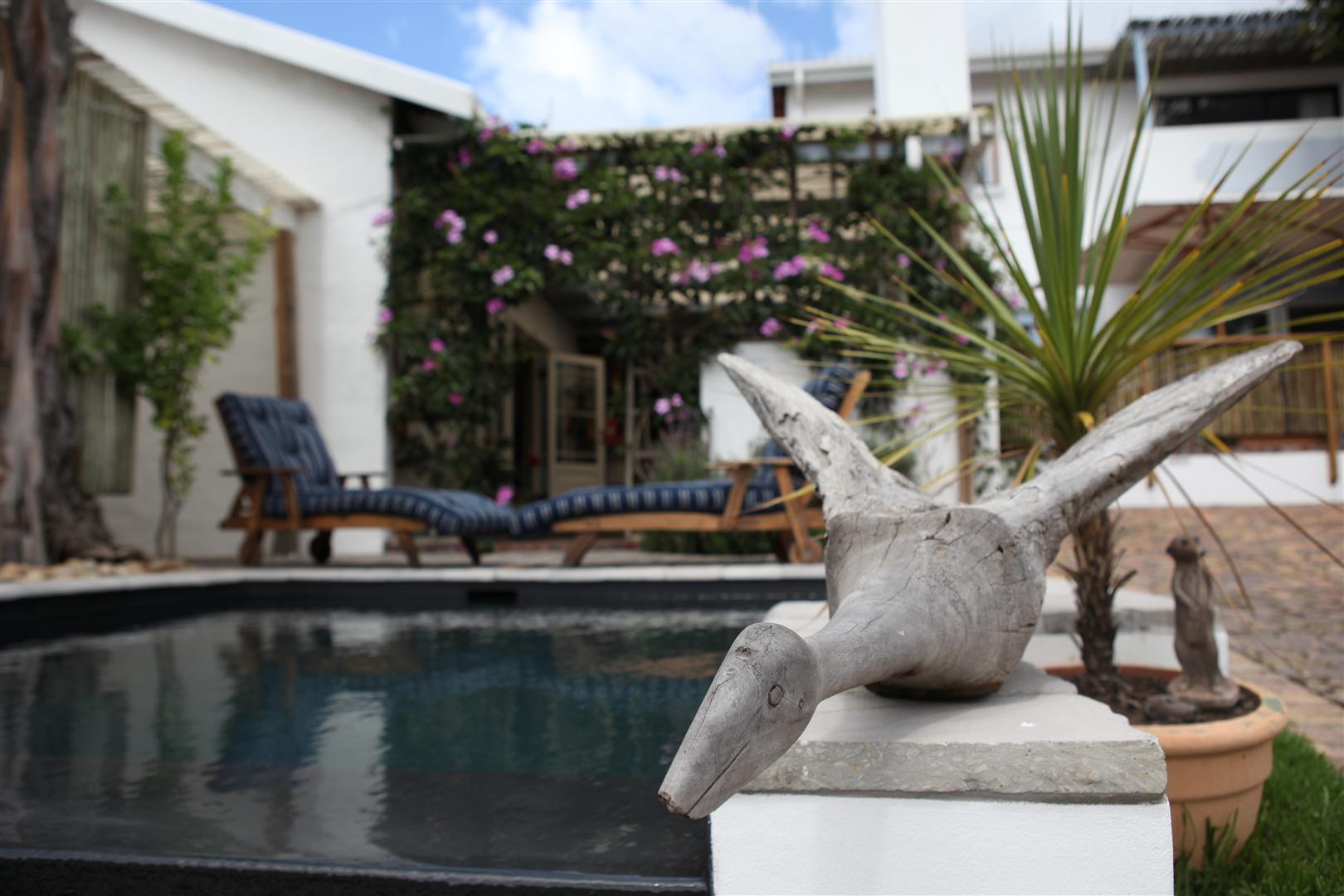 A dip in the plunge pool followed by a jacuzzi (bubbly in hand) affords the perfect interlude between a day at the beach and supper at one of Plett’s many restaurants. If ‘dining in’ is your pleasure, a covered Verandah with braai (barbecue) facilities is available for a traditional South African holiday feast.