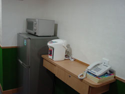 Fridge, a microwave oven and a water kettle available on each floor of our guest houses.