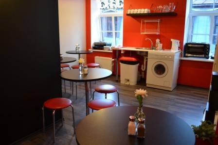 It looks more like stylish cafeteria in hostel kitchen and common room is real youth living room that has not only TV and DVD, but also huge comfy leather sofa, shisha, karaoke, football table, disco ball and friendly surrounding.